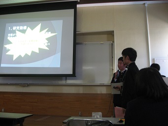 湯本高校にて、「布の性質」「促進分解について」をそれぞれ口頭で発表しました。
